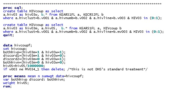 Home » Data » Merging data files » Merging HIV data with Couples recode