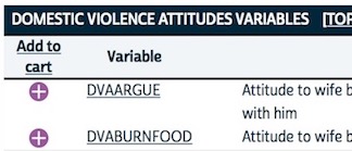 The variable names in IPUMS DHS are links to more information. For example, below, DVAARGUE and DVABURNFOOD are clickable links.