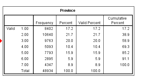 Here, in the variable v024, the province name was declared.