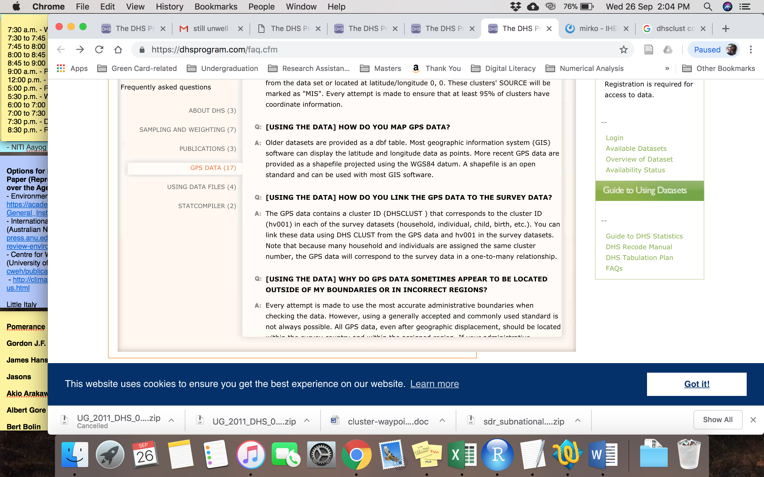 On further investigation, I found that GPS Data, described on the website (as shown in the following pictures), is available in .DBF file or .MDB file, where the cluster information and coordinates (LATNUM and LONGNUM) should be included. However, I am not able to find that for Uganda 2011. Can you please help me get this data? if not, can you guide me as to how I can merge the shapefile (i.e. geographic data/ spatial data) with the DHS survey data at the cluster level?