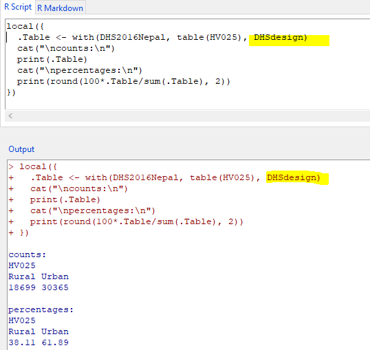 .Table <- with(DHS2016Nepal, table(HV025), DHSdesign)