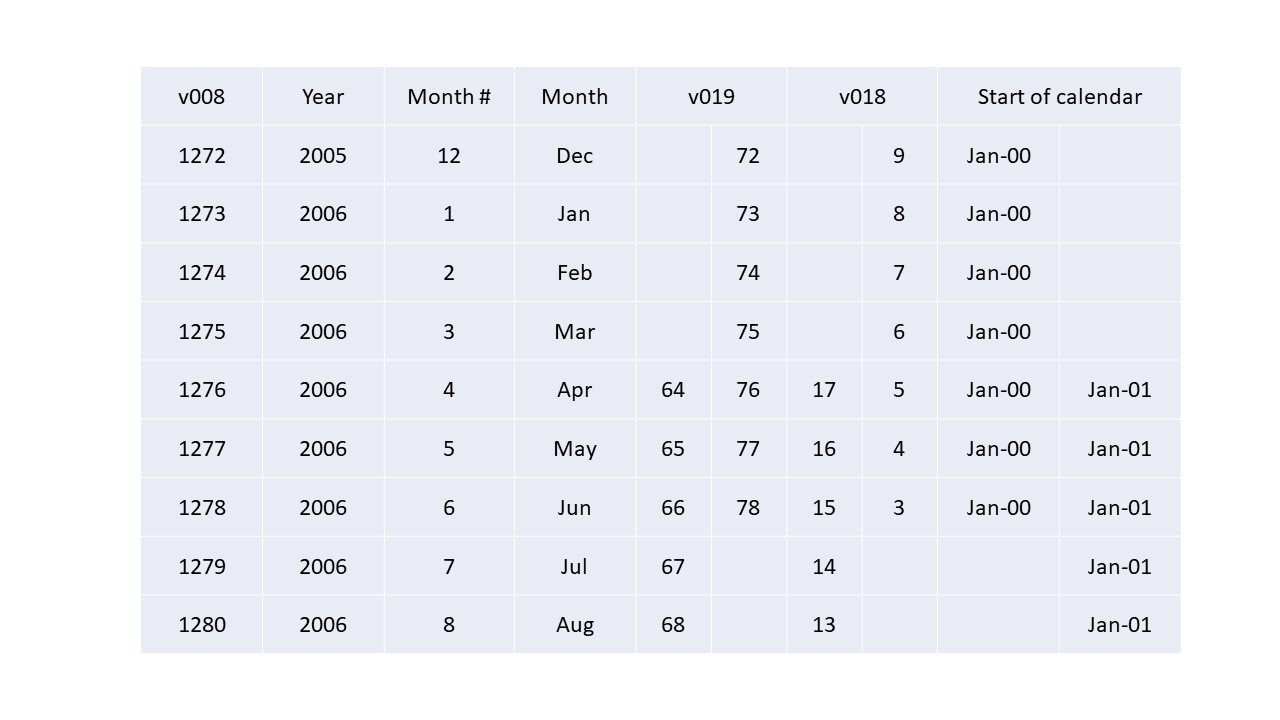 Am I correct in my understanding that the calendar data for India DHS 2005-06 followed two start dates and as such needs to be realigned if I want all cases to correspond to the same calendar month?