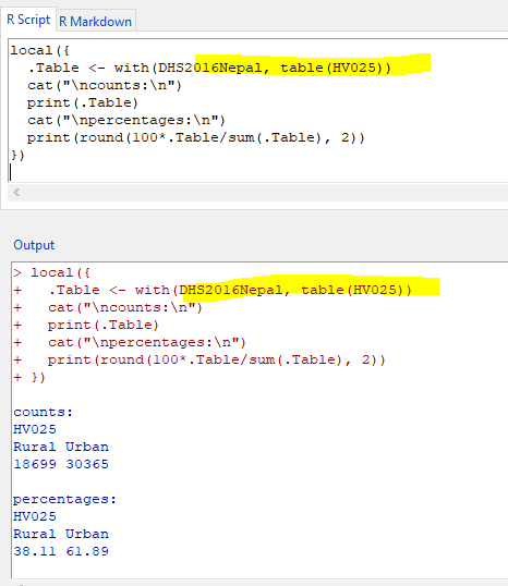 .Table <- with(DHS2016Nepal, table(HV025), DHSdesign)