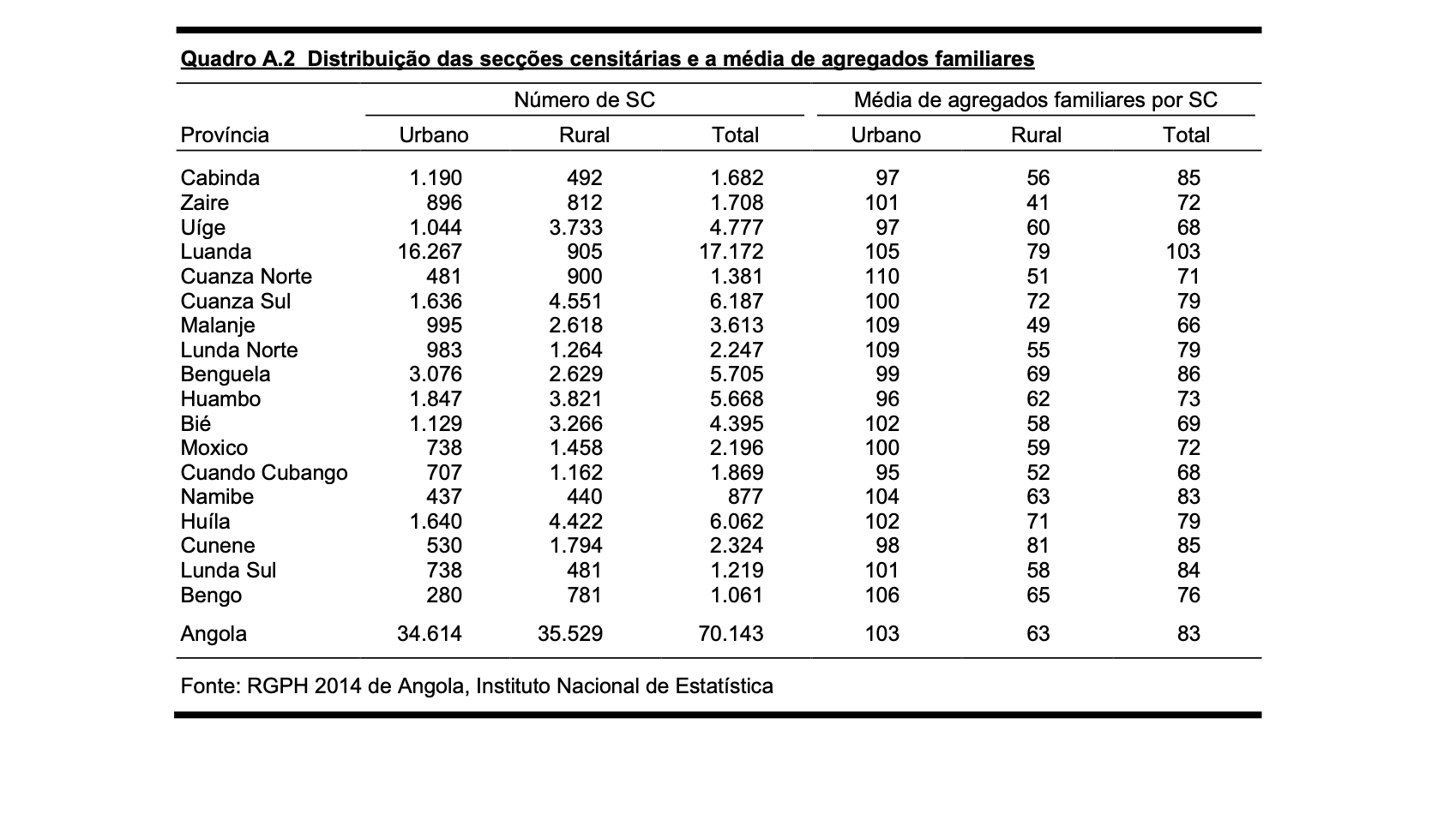 However, I can't find such information for Mozambique DHS 2011. Table A.1 shows the "Alocação da amostra dos agregados familiares e conglomerados segundo os domínios de amostragem por área de residência" - that is, the sample allocation of households and enumeration areas according to sampling domains by area of residence. Hence, they do provide the number of enumeration areas per type of place of residence, but not the mean number of households per enumeration area according to the region and place of residence: the first column of the table provides only the "expected number of households" (so, not the "average" one according to the census) and not divided into urban and rural areas.