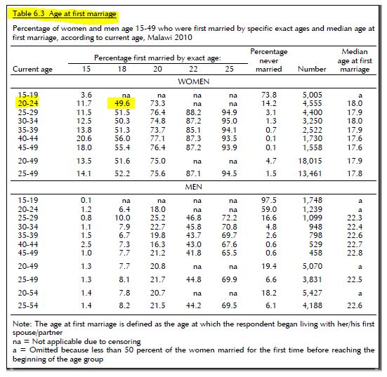 Liz C.S.--I have provided Malayaka some example code that I wrote using the Ethiopia 2011 DHS Final report table 4.6 (I didn't have access to the Malawi data) via private message, which I reproduce below.
