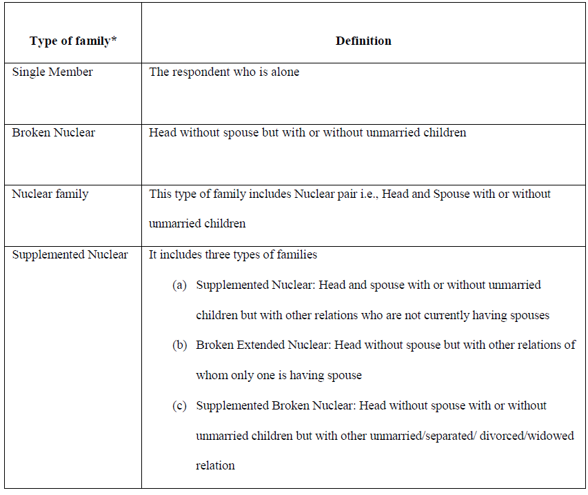 * Criteria for household typology