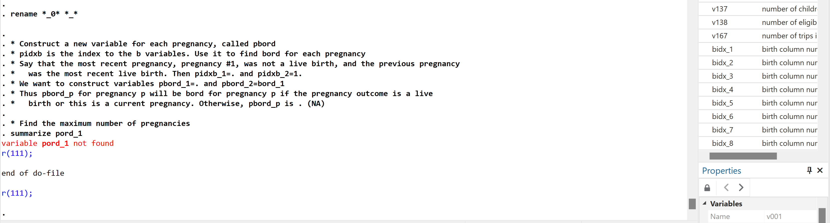 The code I gave with pord and other "p" variables was for DHS-8 surveys, which include pregnancy histories. It works on the Kenya 2022 survey and other DHS-8 surveys.