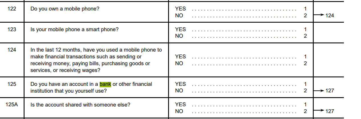 | Banking questions in Men's Questionnaire (DHS 2022) [message #29201] |