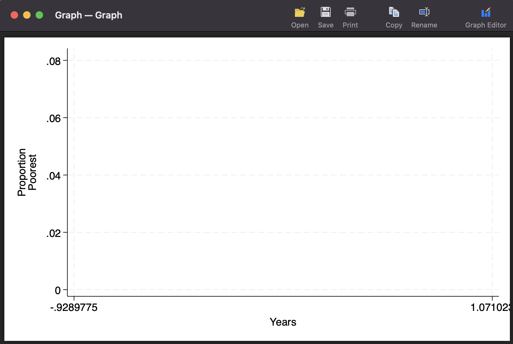 twoway (line prop_poorest_2015_1 prop_poorest_2017_1 prop_poorest_2018_1 prop_poorest_2019_1 prop_poorest_2020_1 prop_poorest_2021_1, ytitle(Proportion "Poorest") xtitle(Years) legend(off))