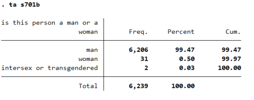 Our team read the recently published DHS report on SOGIE data--Collecting Diverse Data on Gender and Sexuality in Demographic Health Surveys: An Overview. It was an excellent read and we are working on developing a data brief reviewing some of the data you can access in the surveys mentioned in Table 7. Specifically, we were interested in reviewing crosstabs of FP data with SOGIE topics for (1) 2015 Colombia DHS, (2) 2021 Cambodia DHS, (3) 2019-21 India DHS, (4) 2015-16 Myanmar DHS, and (5) 2015-16 South Africa DHS. I had specific questions about two surveys below.