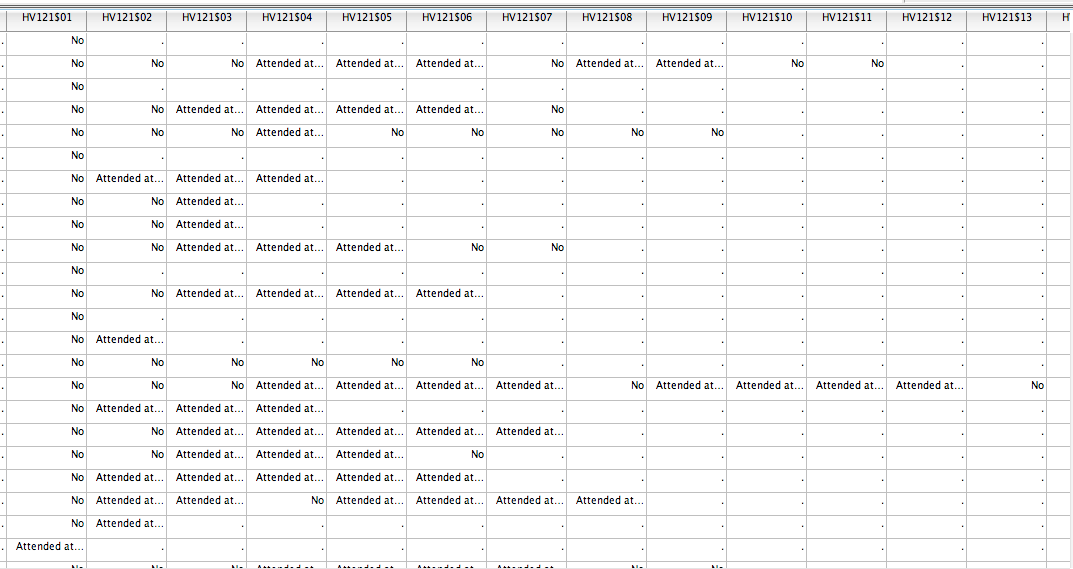 For example, when one reads HV121, Member attended school during current school, an answer of attended at some time affirms that they are not currently attending school, but have attended in the past.