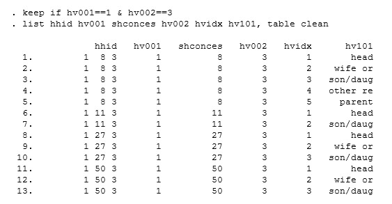 However, I'm getting a "does not uniquely identify observations in the using dataset" error. I observed duplicates in terms of v001 v002 v003 for the following files: