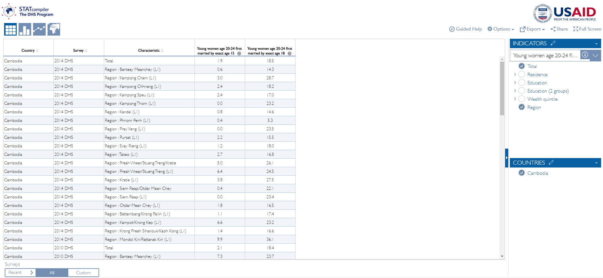 Home » Countries » Other countries » Cambodia DHS (all years) - Regional disaggregation not available from the API endpoint (Regional disaggregation for 2 indicators belonging to Cambodia don't seem to be available on the API side.)