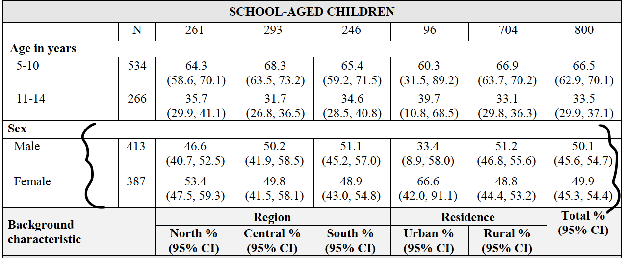Now it all worked fine, however when took to assessing school aged children's characteristics i noticed some discrepancies between the values I was calculating vs those reported in the MNS 2017. I've included the discrepancies in the screenshots below.