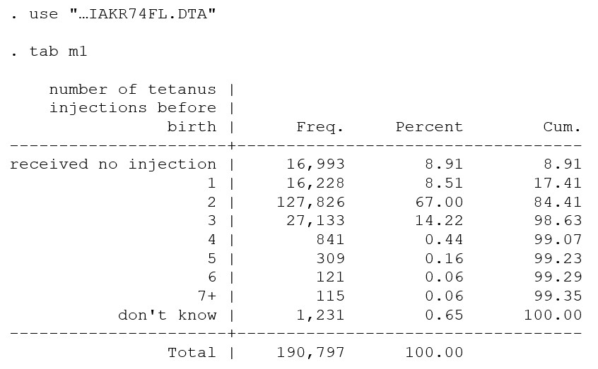 The early files from that survey had some errors. We are now on version 4. When I open IAKR74FL.dta, I get a much more plausible distribution of m1. It must have been one of the variables that was corrected. You should be able to access the "74" versions of the files from the website.