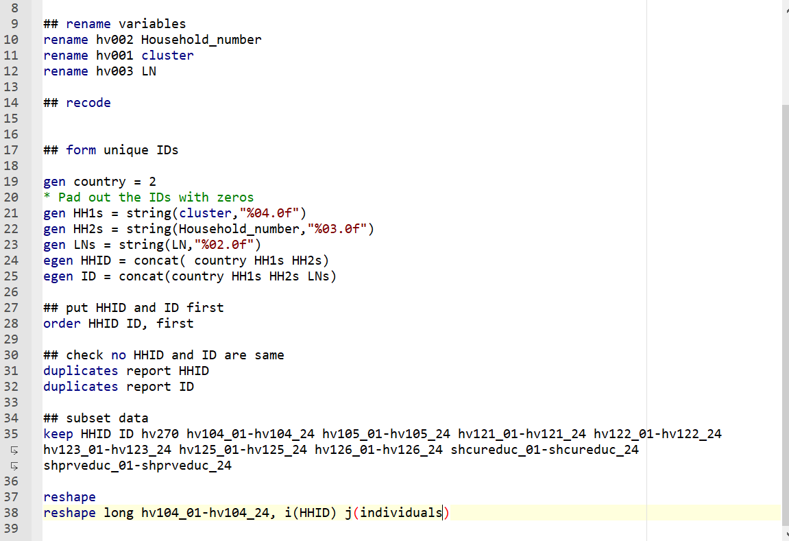 Home » Data » Dataset use in Stata » Reshaping Kenya's DHS dataset (Reshaping Kenya's DHS dataset - need to know how to reshape and form unique ID's)