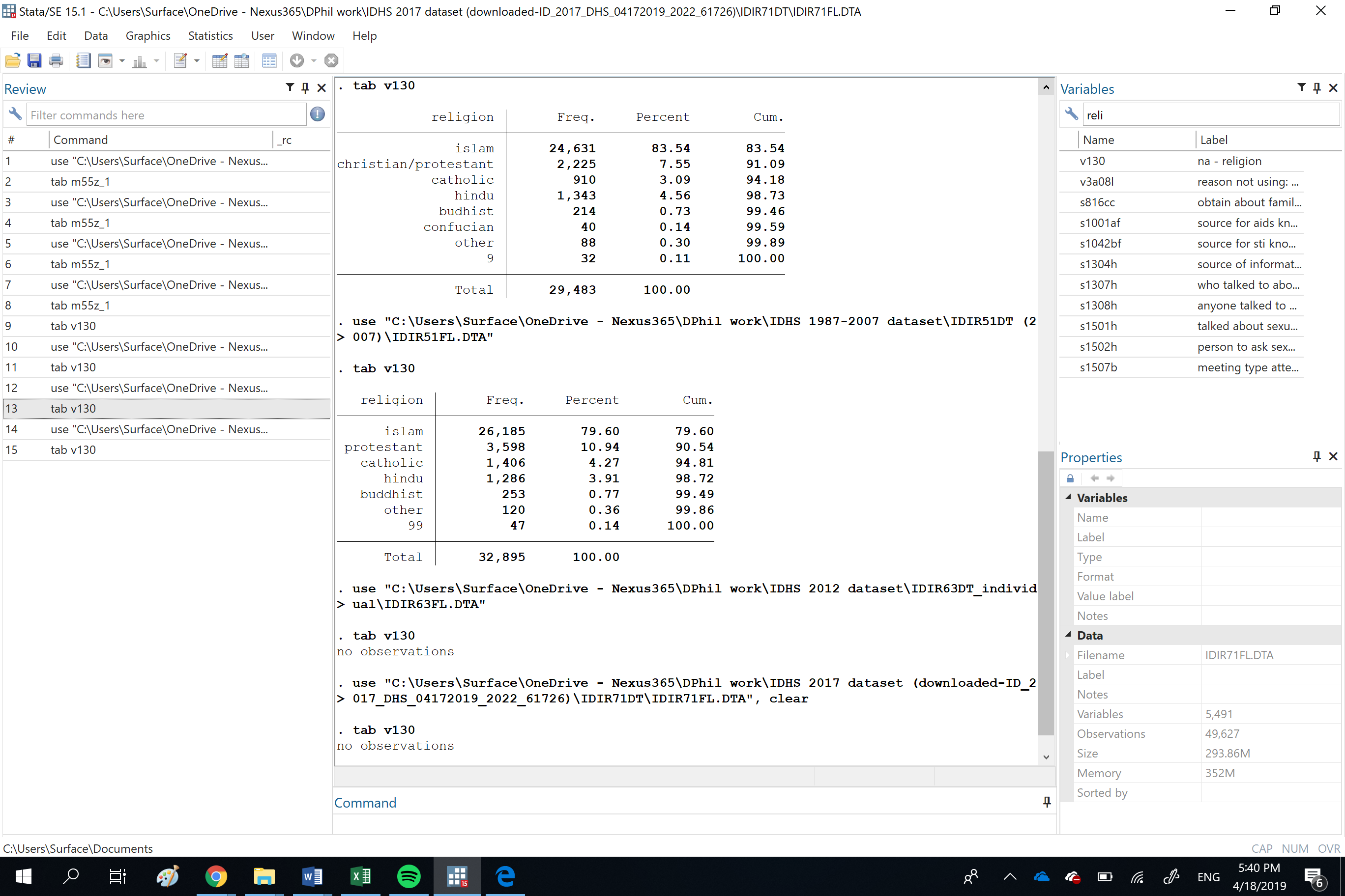 2. Religion variable (v130) shows no observation in IDHS 2012 and 2017, but it does in previous datasets (attached). Is there any way I could access it?