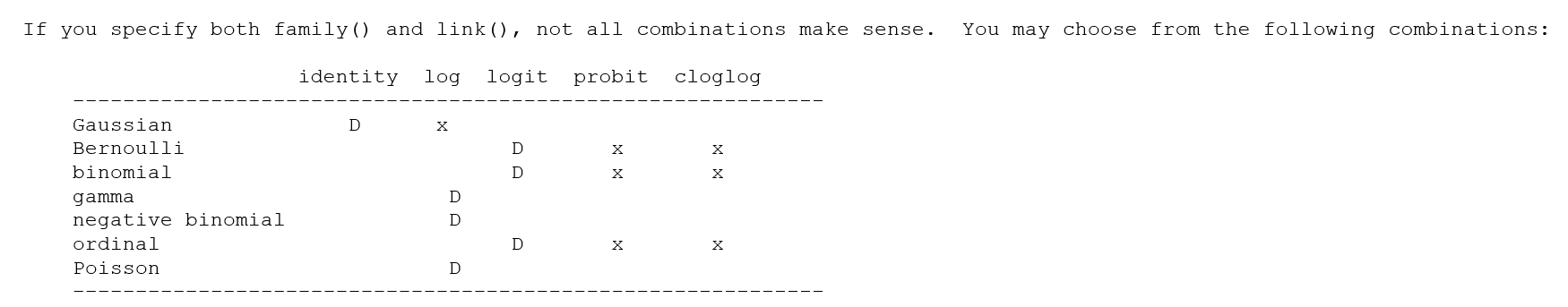 link log is not allowed with family bernoulli