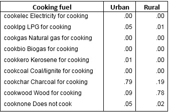 So most urban fuel is charcoal and most rural fuel is firewood.