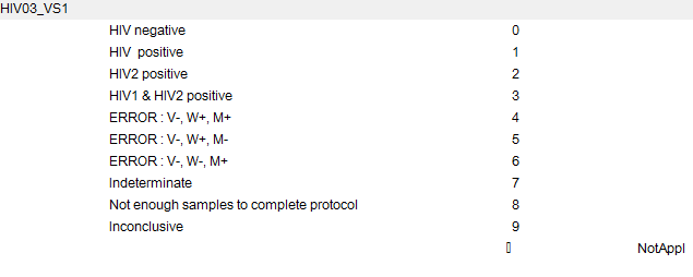 I am working with DHS data from Sub-Saharan Africa from all years with HIV test results. When looking at the HIV test data, hiv03, there are codes that were unexpected and I cannot find their meaning from the country's publications. From my understanding, the coding should be 0 as HIV negative and 1 as HIV positive. There are also values of 2,3,7, and 8 in hiv03.