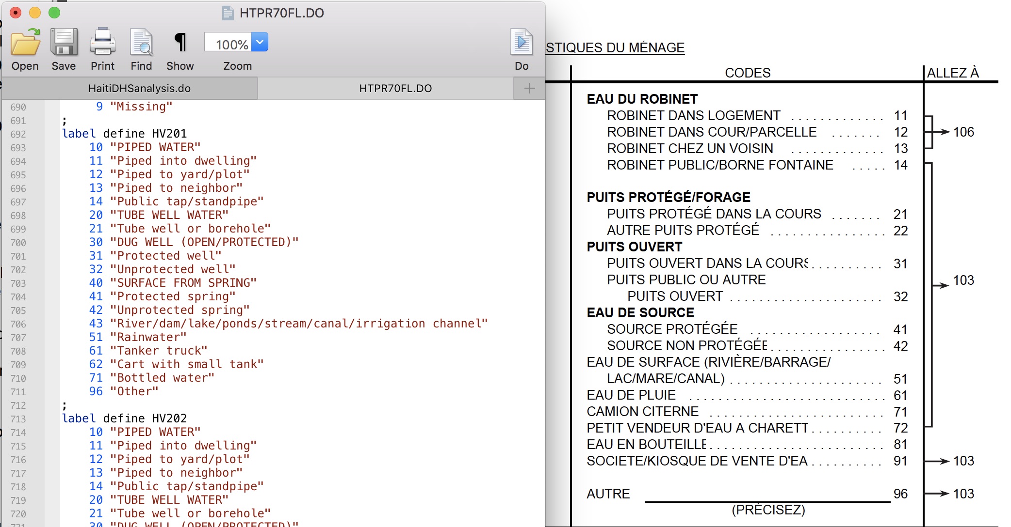 I had a question about hv201 (water source for drinking) not matching the questionnaire.