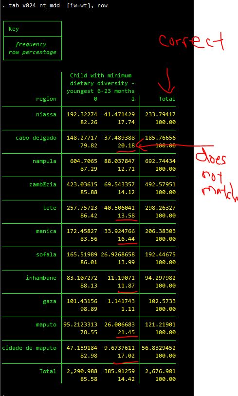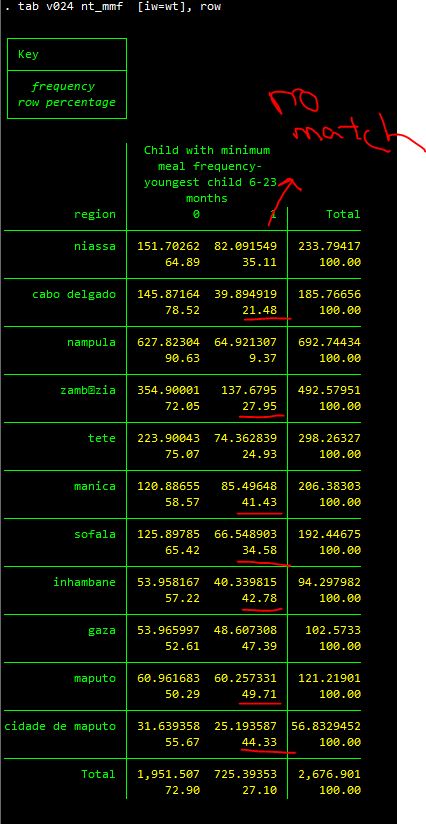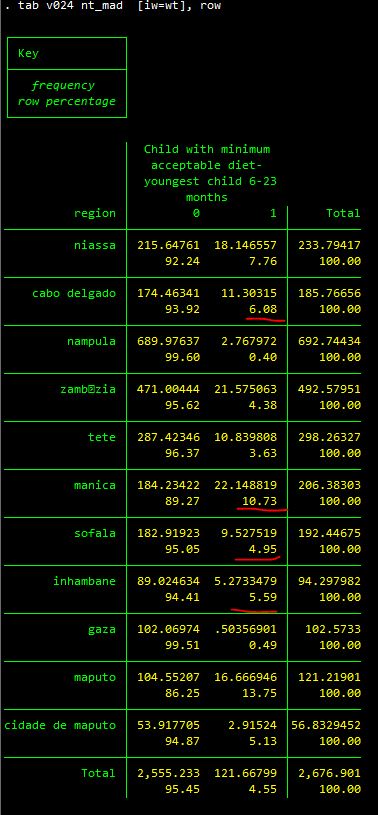Home » Topics » Nutrition and Anthropometry » Mozambique: Standard DHS, 2022-23, KR Dataset (nt_mdd, nt_mmf, nt_mad estimate does not match the report)